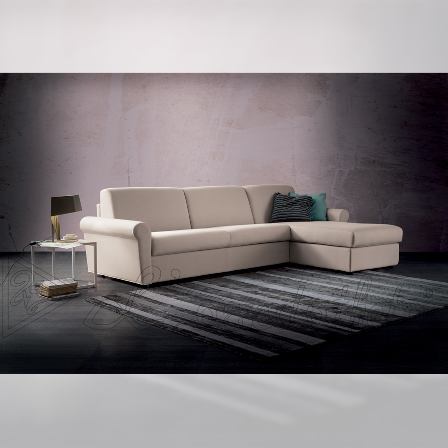 La chaise-longue rende il divano una vera isola del relax, dove conversare o distendersi per leggere o riposare, sempre pronta per la buona notte degli ospiti.